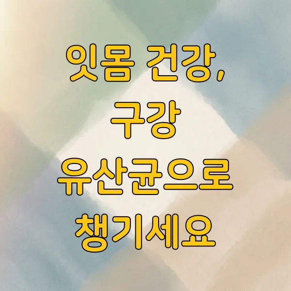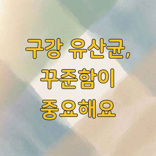 구강 유산균은 입안의 유익균 균형을 맞춰 구취, 잇몸 건강, 충치 예방에 도움을 줄 수 있는 프로바이오틱스입니다. 자신에게 맞는 균주가 포함된 제품을 선택하고, 올바른 구강 위생 습관과 함께 꾸준히 섭취하는 것이 중요합니다.