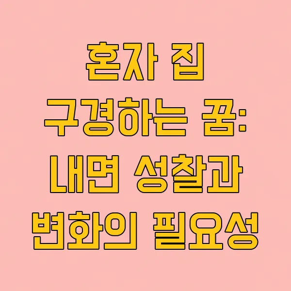 혼자 집을 보며 어떤 생각을 했는지가 중요해요. 집을 둘러보며 만족감을 느꼈다면, 스스로에게 만족하고 앞으로 나아갈 준비가 되었음을 의미할 수 있습니다. 반대로 불안하거나 부족함을 느꼈다면, 자신의 현재 상황에 대한 불만족이나 개선이 필요한 부분을 암시하는 것일 수 있어요.